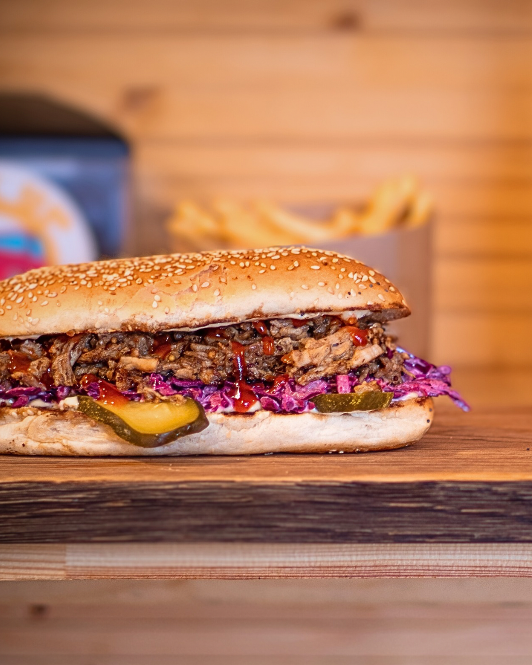 Na co dzień zjesz u nas burgera, ale w niektóre weekendy w naszej ofercie znajdziesz też bułę z szarpanym żebrem czy pastrami, o czym informujemy na bieżąco na naszej stronie oraz FB.